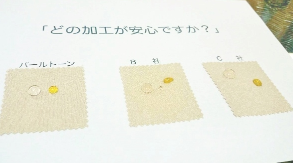 パールトーン社のパールトーン加工®ではお水については全く染みこんだ後は