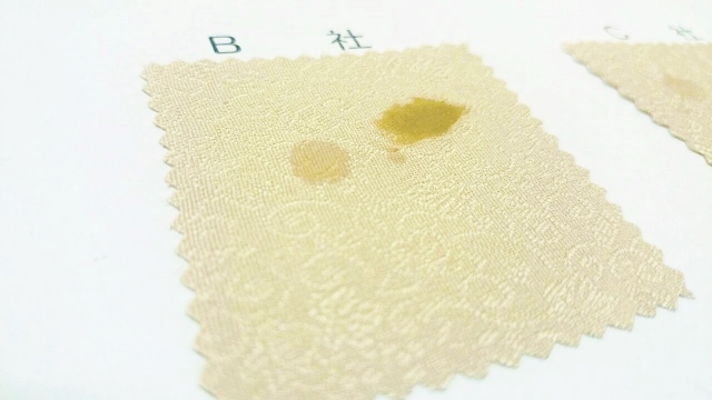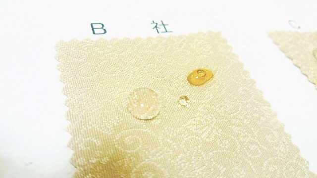 こちらはパールトーン社、B社、C社の撥水加工の実験です。
