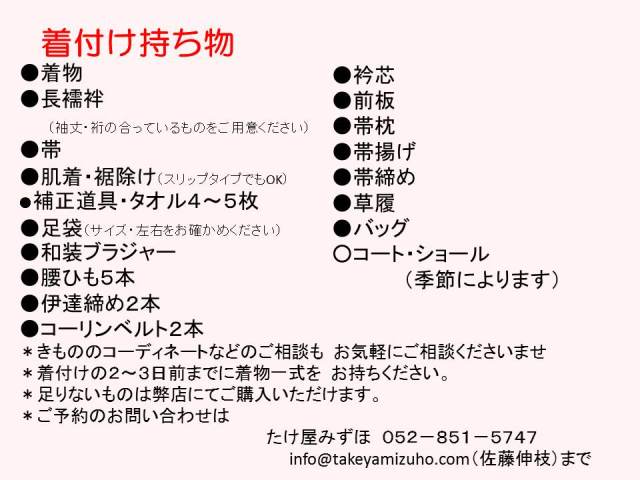 ご予約の際にお着物のお持ち込み日をお伝えください。